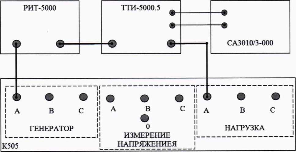 8.5.6 На эталонном трансформаторе ТТИ 5000.5 включите обмотку с номинальным первичным током 50 А. На амперметре СА3010/3-000 включите предел 5 А.