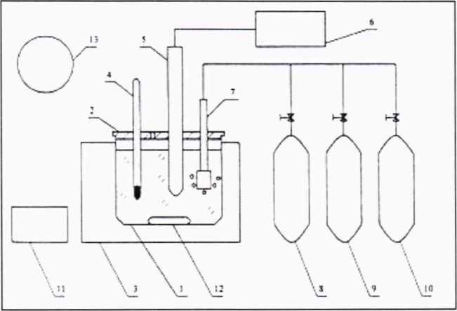 - водяной термостат с диапазоном регулирования температуры от 0 до 100 °C, допускаемая погрешность установления температуры контролируемой среды в пределах ±0,2 °C;