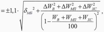 где AWb - абсолютная погрешность измерений массовой доли воды, %, при измерениях в лаборатории определяется по формуле (6), при измерениях объемной доли воды поточным влагомером вычисляется по формуле: