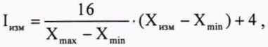 X - настроенный нижний предел измерений ИК, соответствующий значению силы постоянного тока 4 мА, в абсолютных единицах измерений;