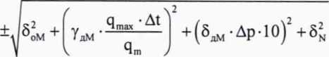§ м - пределы дополнительной относительной погрешности измерений массомера, вызванной изменением давления продукта на 0,1 МПа от давления среды при поверке массомера, %;