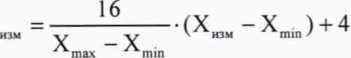 Х^ - значение измеряемого параметра, соответствующее задаваемому аналоговому сигналу силы постоянного тока от 4 до 20 мА, в абсолютных единицах измерений. Считывают с монитора операторской станции.