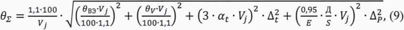 - суммарное среднееквадратическое отклонение оценки измеряемой величины, %.