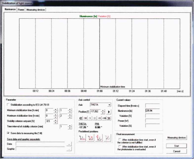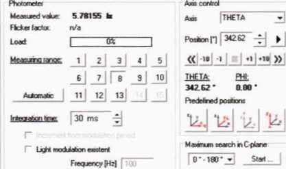 8.2.1 Включить питание приборной стойки, источника переменного напряжения, анализатора мощности, измерительного компьютера, а также включить контроллер управления моторами гониофотометра.