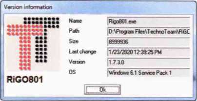 8.2.2 Запустить программу «RIGO801», дважды нажав на ярлык «Rigo801 v. 1.7.3» (см. рисунок 1), расположенный на рабочем столе ПК (или запустив программу через меню приложений «Windows»: «Пуск» —> «Программа» —* «TechnoTeam» —> «Rigo801»).