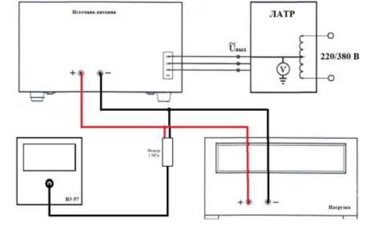 Рисунок 8 - Структурная схема соединения приборов для определения уровня пульсаций силы постоянного тока