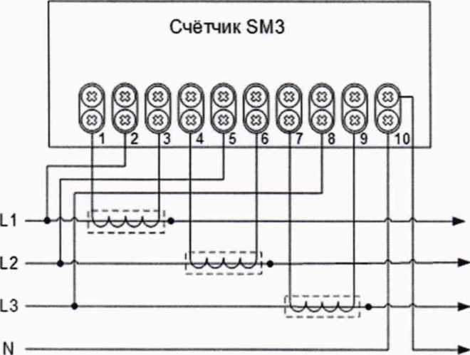 Рисунок Б.2 - Подключение счётчиков трансформаторного включения