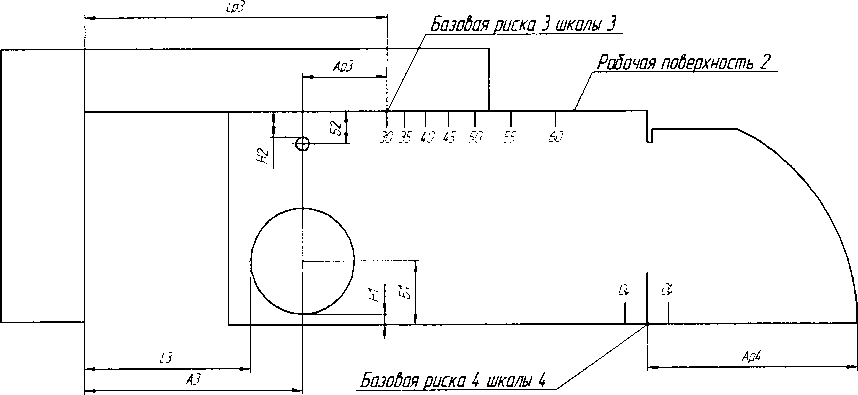 2.4. Определение расстояния АрЗ от базовой риски шкалы 3 до проекции центра отверстия Д1 на рабочую поверхность 2.