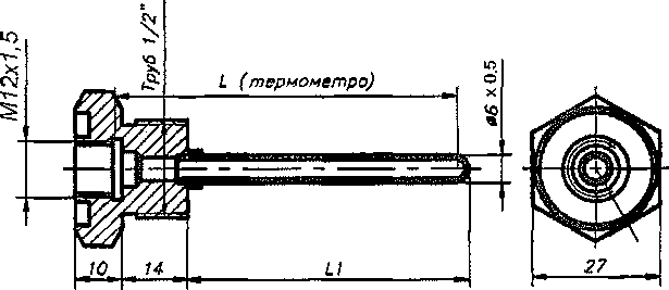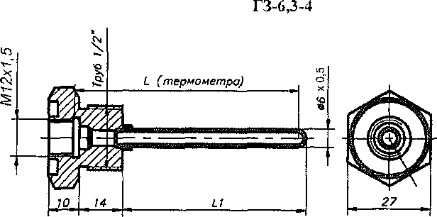 - ГЗ-6,3-6-1- L - G1/2” - с внешней трубной резьбой J4". с длинами рабочей части термометров L= 70; 98; 133; 223 мм.