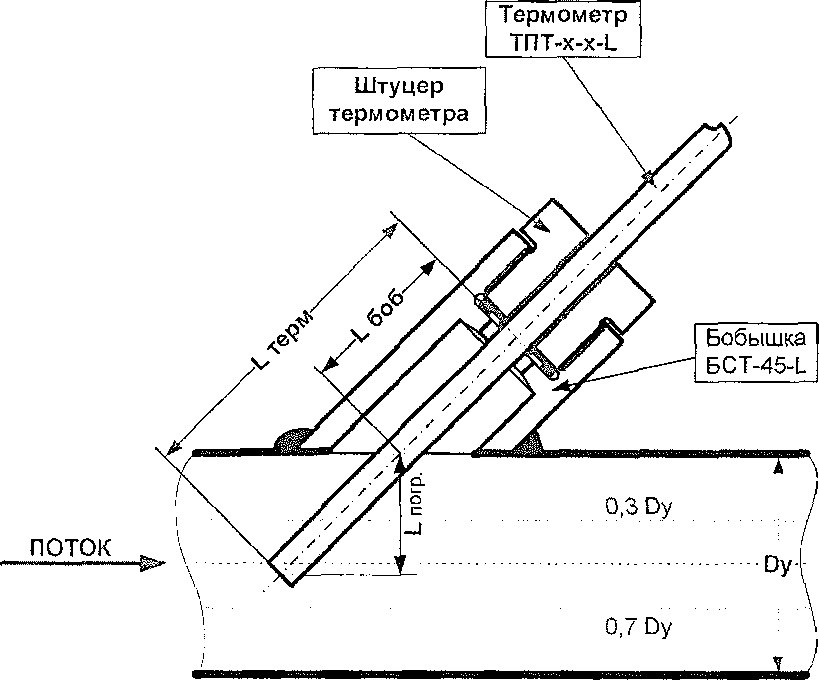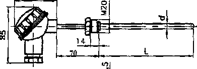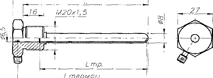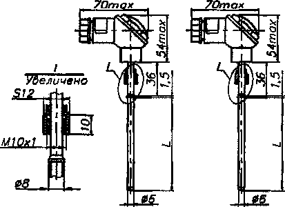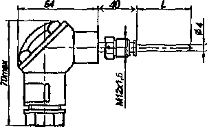 Длина монтажной части термо метров комплекта L может быть разной для термометров, составляющих комплект, и выбирается из диапазона от 70 до 180 мм и, по согласованию, более (для ЫСХ 5ООП - от 100 мм).