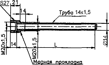 Гильза защитная ГЗ-6,3-6-1-70 - внешняя резьба - М20х1,5.
