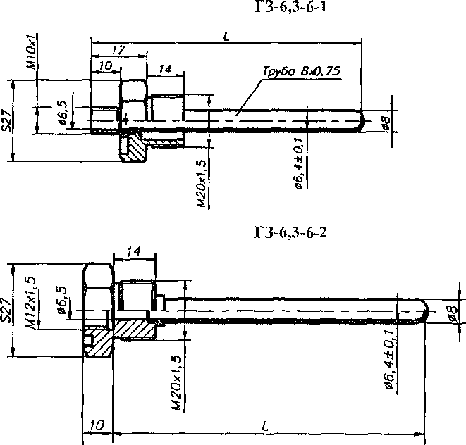 Гильзы к ним: - ГЗ-6,3-6-2- L - с внешней резьбой М20х1,5;