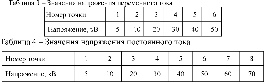 По киловольтметру PV1 устанавливают напряжение согласно таблице 3, таблице 4 соответственно. Фиксируют результаты измерений.