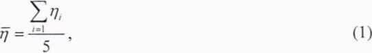 Рассчитывают среднее арифметическое значение динамической вязкости пяти измерений по формуле