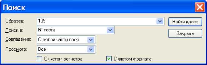 В графу «Образец» вводится искомый текст, например, дата, или фамилия инспектора, или дата/время измерения, и т. д.