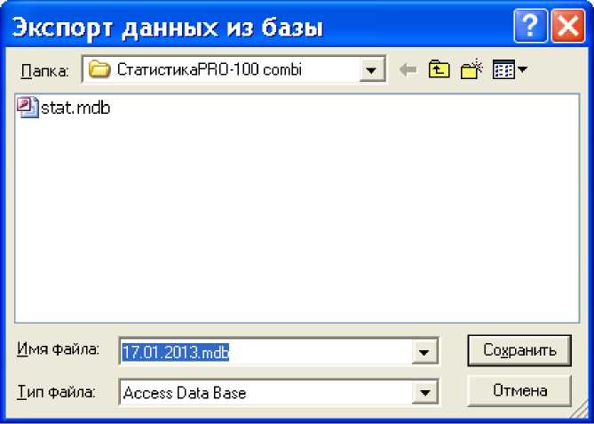 димо выбрать, куда сохранить экспортируемую базу. Имя файла по умолчанию - текущая дата. При необходимости измените каталог (папку), а также имя файла по своему усмотрению.