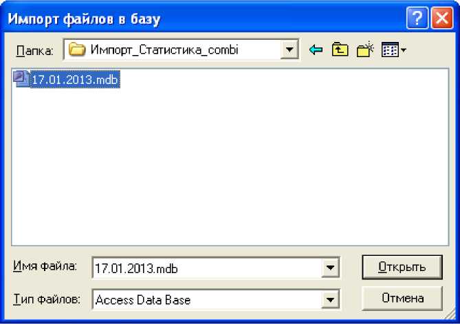 Примечание - следует выбрать папку, в которую преДварительно был скопирован файл с экспортируемыми данными из базы данных другого компьютера.