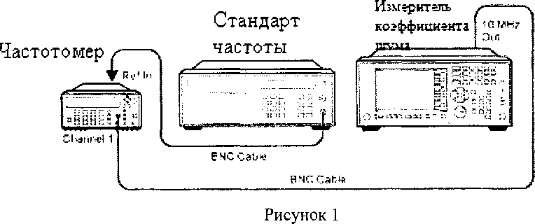 8.4.2 Для определения относительной погрешности воспроизведения частоты опорного генератора собрать схему согласно рисунку 1, подав сигнал с выхода 10 MHz OUT анализатора на