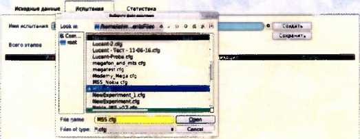 - выбрать имя испытаний или создать новую настройку испытаний, щелкнув по кнопке Создать, откроется окно, рисунок 4, в котором можно выбрать ранее созданную настройку или ввести имя в бокс File name, например, имя СИДС и сохранить, нажав на кнопку Save.