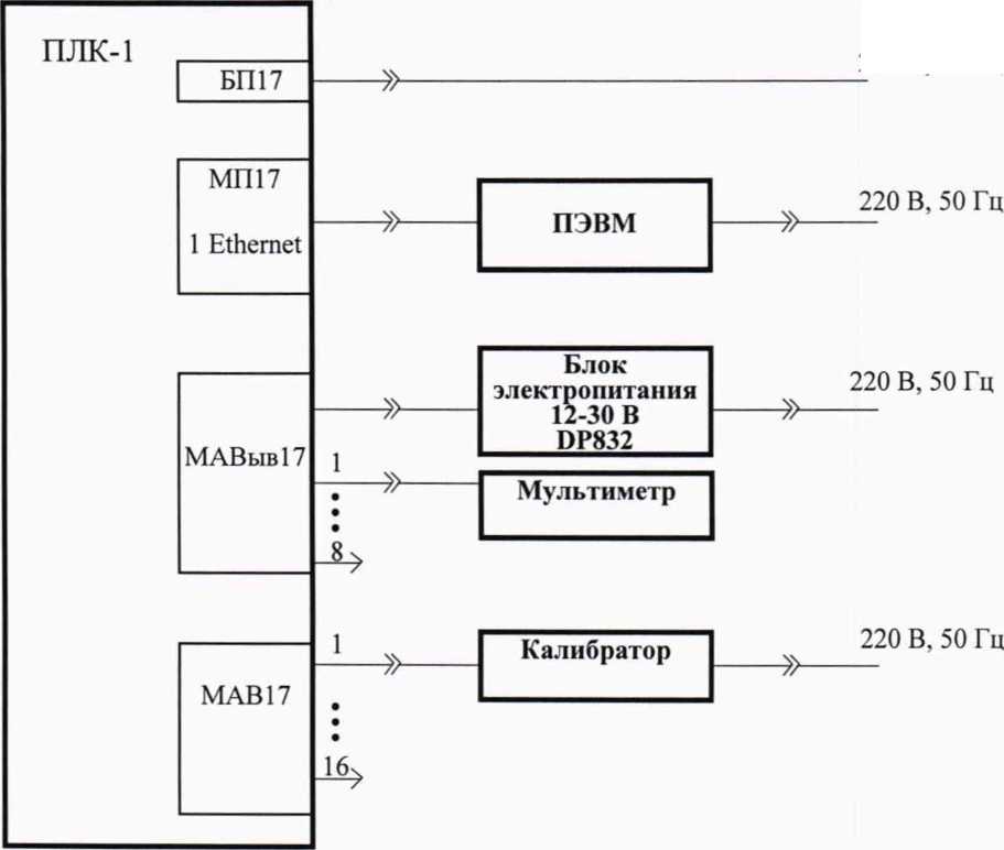 Рисунок 3 - Схема подключения приборов при поверке контроллеров