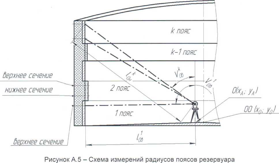 4.1 При поверке резервуара вместимость первого пояса резервуара определяют по результатам измерений внутреннего диаметра с применением электронного тахеометра и высоты первого пояса.