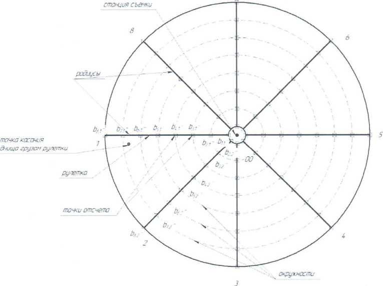 концентрической окружности днища, второй - номер радиуса днища (образующей)