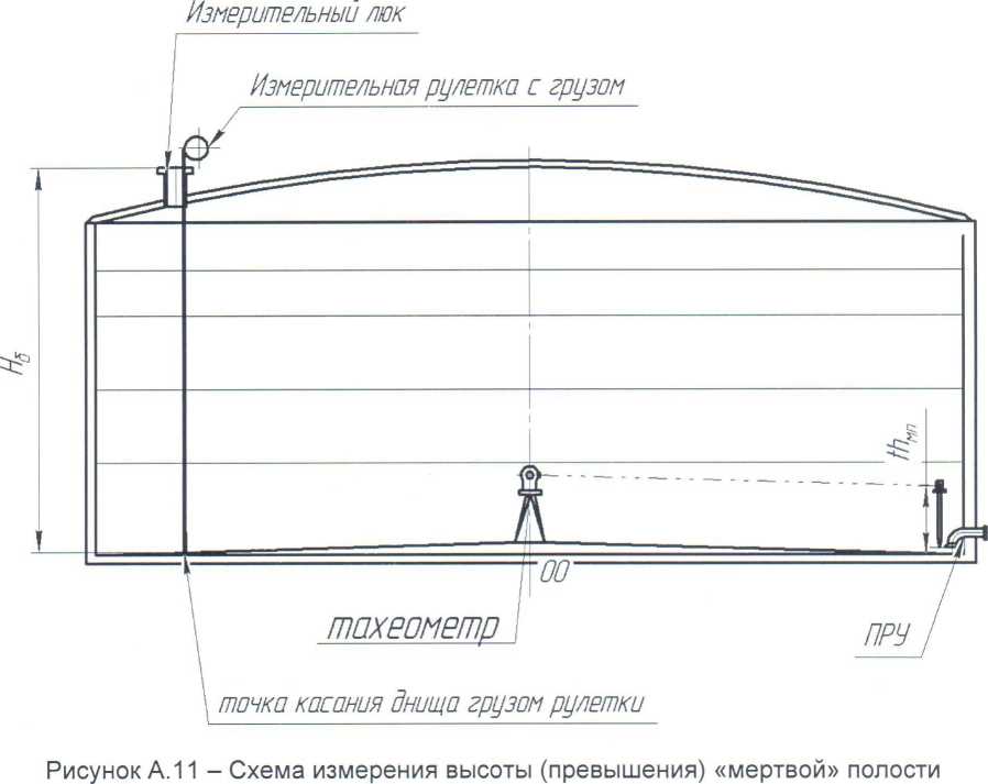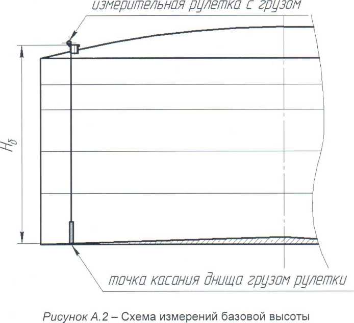 3.10 базовая высота резервуара: Расстояние по вертикале от точки касания днища грузом рулетки до верхнего края измерительного люка или до риски направляющей планки измерительного люка (при наличии)