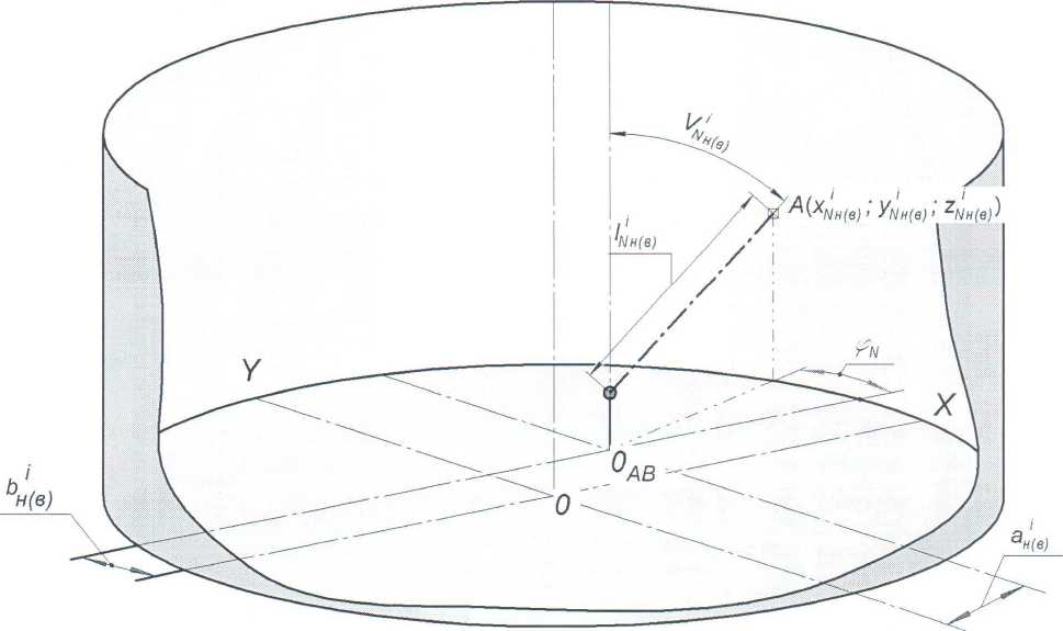 Н - уровень жидкости, соответствующий, отсчитываемый от точки касания днища