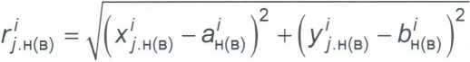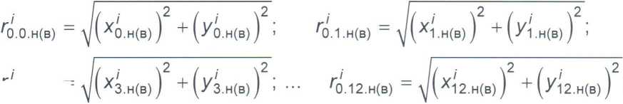 bj_^ - высота превышения призмы, установленной по периметру (/' - 1)-й вышележащей концентрической окружности.