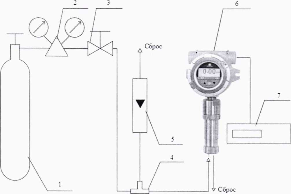 5 - ротаметр (индикатор расхода); 6 - газоанализатор; 7 - вольтметр универсальный.