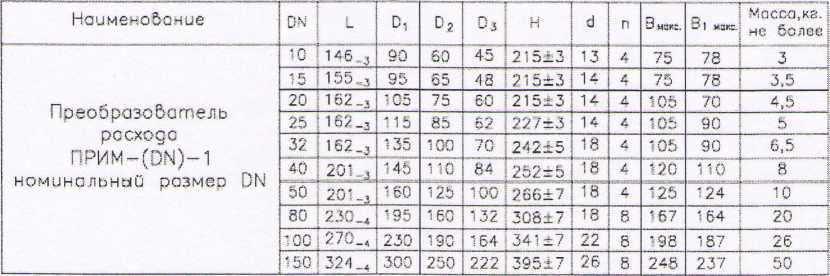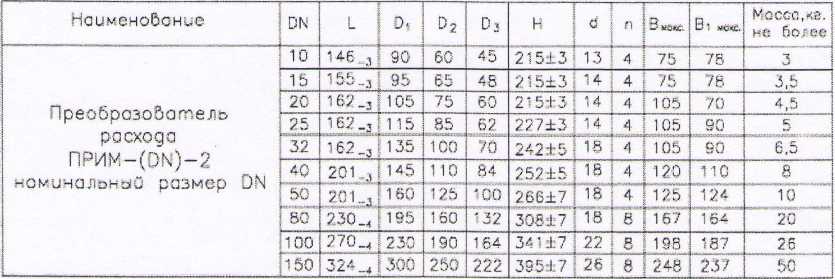 2.3.2. Предельные значения весов импульсов (коэффициентов К) преобразователей с различными номинальными размерами приведены в табл.2.2. Конкретное значение коэффициента К указывается в паспорте преобразователя.