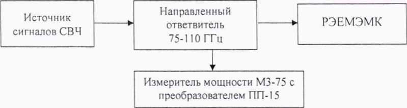Установить на выходе источника сигналов СВЧ частоту 115 ГГц и такой уровень мощности, чтобы мощность, измеряемая РЭЕМЭМК, была не менее 0.1 мВт.