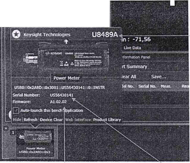 8.4.3.4 Включить мощность на генераторе сигналов E8257D и установить такую выходную мощность, чтобы показания поверяемого преобразователя были близки к 20 дБ (I мВт) (по показаниям на ПК).
