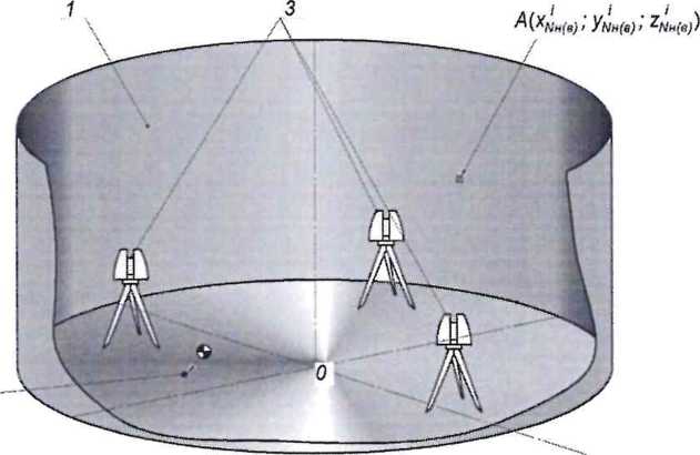 3.16 сканирование: Операция по измерению линейных и угловых координат точек, лежащих на поверхности стенки резервуара, внутренних деталей и оборудовании.