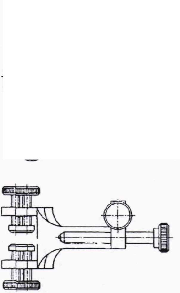 Микрометр закрепляют в стойке при помощи кронщтейна в таком положении, чтобы микрометрический винт занимал вертикальное положение, и вставка находилась в центре измерительной поверхности микрометрического винта и касалась ее.