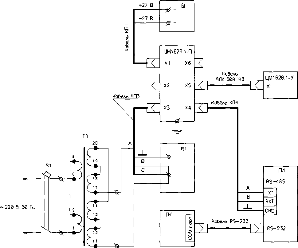 ЦМ1628.1-П и правильность подключения кабеля RS -485 к преобразователю интерфейсов. Проверить кабель на наличие обрывов и замыканий. Неисправный кабель отремонтировать и заменить. Если линия связи
