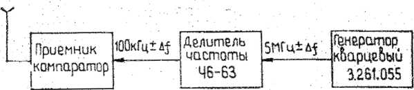 Рис. 12. Структурная схема поверки погрешности nacTOTiir кварцевого генератора по эталонным сигна.эам, передаваемым по эфиру.