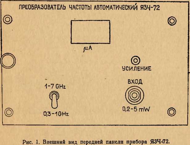 1.1. преобразователь частоты автоматический ЯЗЧ-72 предназначен для автоматического преобразования и измерения частоты непрерывных синусоидальных сигналов в диапазоне частот от 0,3 до 7,0 ГГц при совместной работе с электронносчетным частотомером (ЭСЧ) 43-54.