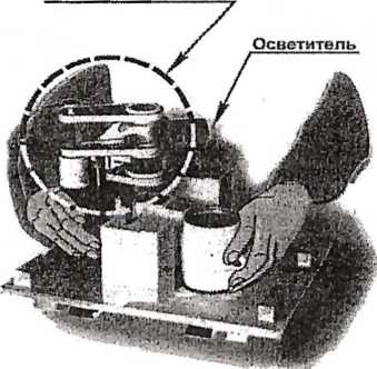 • Вынимать из упаковки тубусодержатель с тубусом, механизмом нагружения и осветителем, как показано на рисунке.