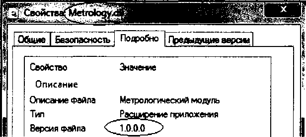 10) Найти файл «VerifyTime.dll» по следующему пути «C:\P2kServer\». Выделить файл и нажать правую кнопку мыши, в выпавшем меню выбрать пункт - «свойства». В выпавшем окне выбрать закладку «Подробно». В верхней части окна (рисунок 10) указано идентификационное наименование ПО - «VerifyTime.dll».