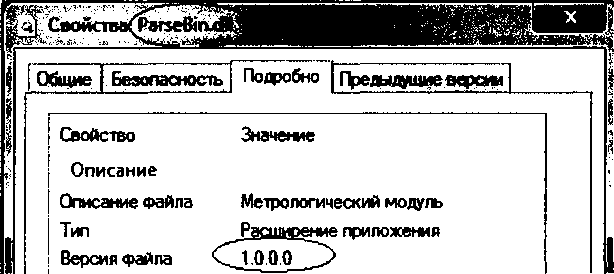 8) Найти файл «ParsePiramida.dll» по следующему пути «C:\P2kServer\». Выделить файл и нажать правую кнопку мыши, в выпавшем меню выбрать пункт - «свойства». В выпавшем окне выбрать закладку «Подробно». В верхней части окна (рисунок 8) указано идентификационное наименование ПО - «ParsePiramida.dll».