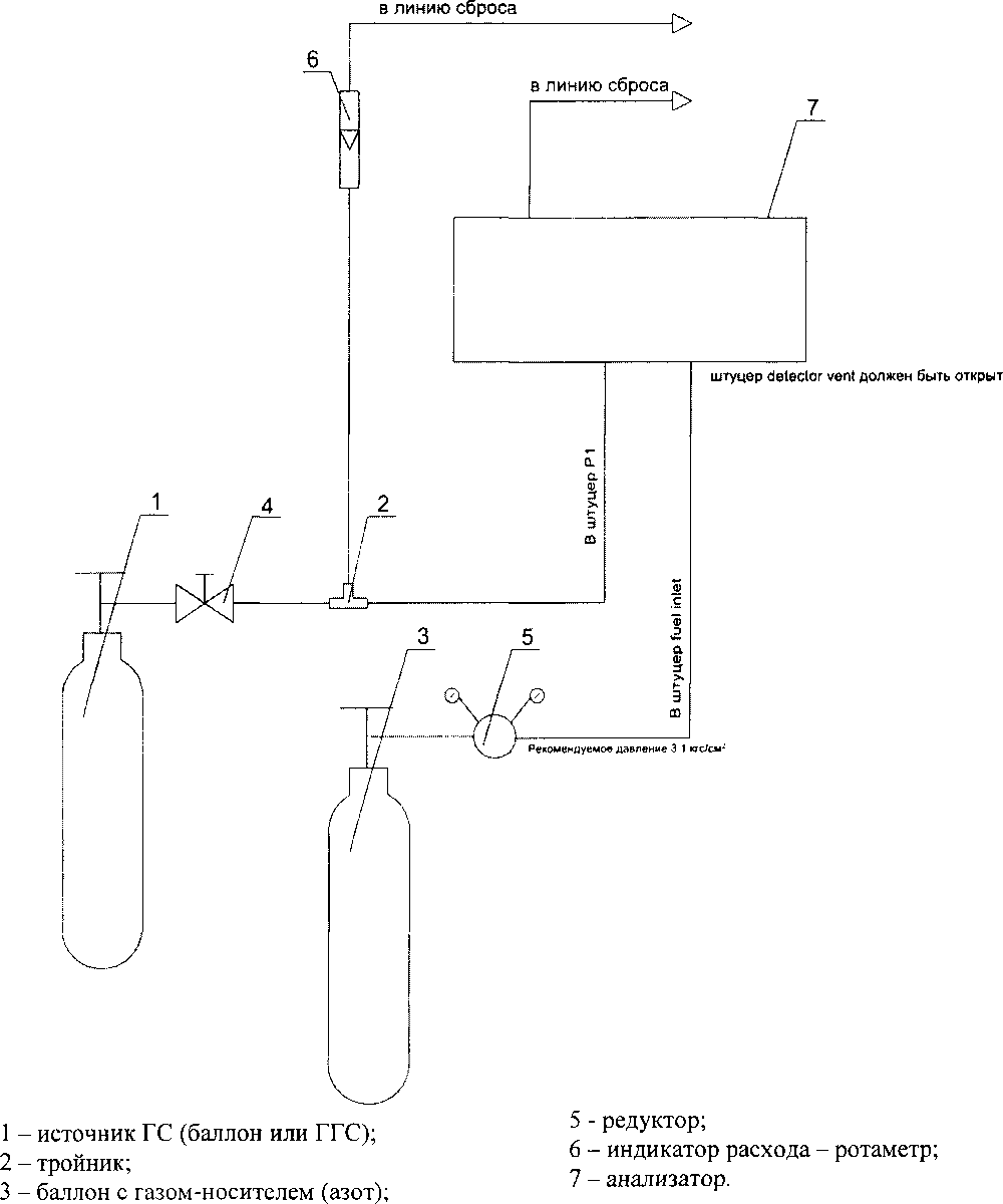 - установить давление вспомогательных газов на входе в анализатор в соответствии с рекомендациями, приведенными в технической документации на анализатор;