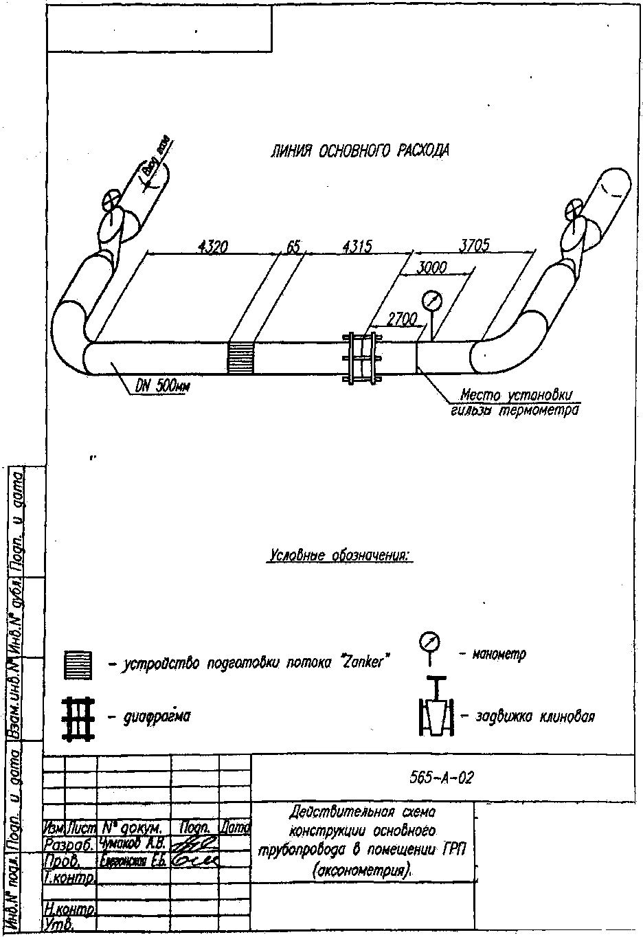 Проектная схема конструкции растопочного трубопровода б помещении ГРП (аксонометрия),