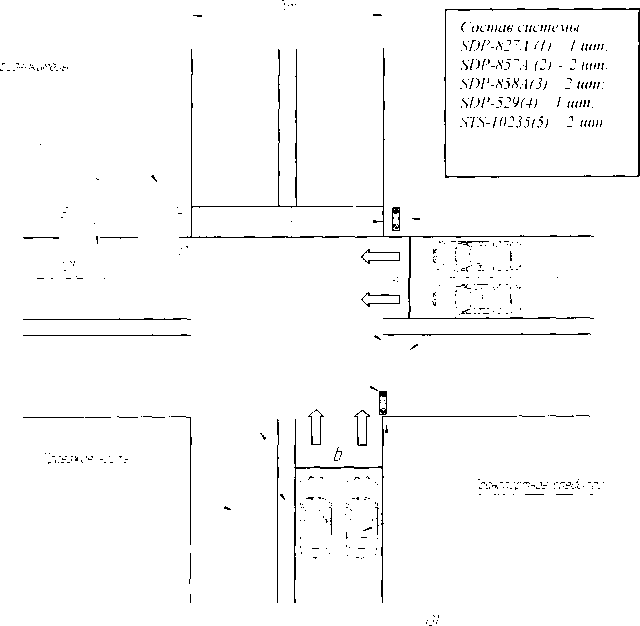 IP-видеокамера SDP-858A (3) является обзорной, предназначена для фиксации показания светофора в момент совершения нарушения. Устанавливается на высоте 6-12 метров, гак чтобы перекрёсток просматривался максимально сверху, захватывался участок дороги длиной 10 mci-ров до стоп-линии и пересекаемая проезжая часть. Максимальное расстояние до светофора составляет 80 метров, максимальная удаленность обзорной видеокамеры от стон липин (а.Ь) 35 метров. Обзорная IP-видеокамера устанавливается таким образом, чтобы в поле зрения IP-видеокамеры попадали ГРЗ ТС. нарушающих правила дорожного движения под углом не более 30° относительно плоскости номерной пластины.