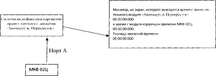 Запустить на системе «Автопатруль Перектресток» программное обеспечение limeConec-tion.exe. Подключить модуль коррекции времени к соответствующему порту (порт Л) и убедиться в наличии индикации текущего времени системы (измеренного времени), времени модуля МКВ-02Ц (эталонного времени) и разницы этих значений времен в окне программы TimeCorrection.exe. Провести измерения интервала времени I секунда и зафиксировать (сделать снимок (скриншот) экрана) показания эталонного и измеренного времени. Зафиксирован, не менее 5 измерений и результаты отразить в протоколе испытаний.