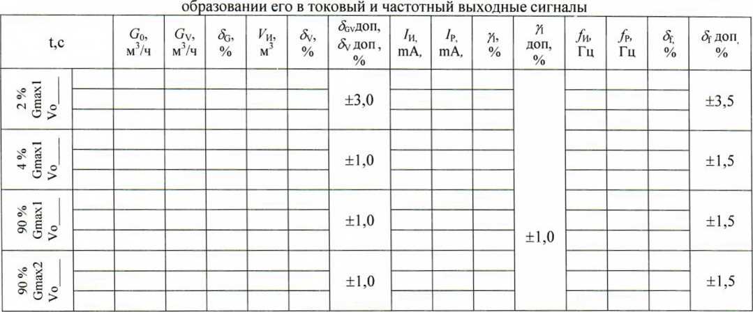 Определение относительной погрешности при преобразовании протекшего объема (объемного расхода) в импульсный (частотный) выходной сигнал.