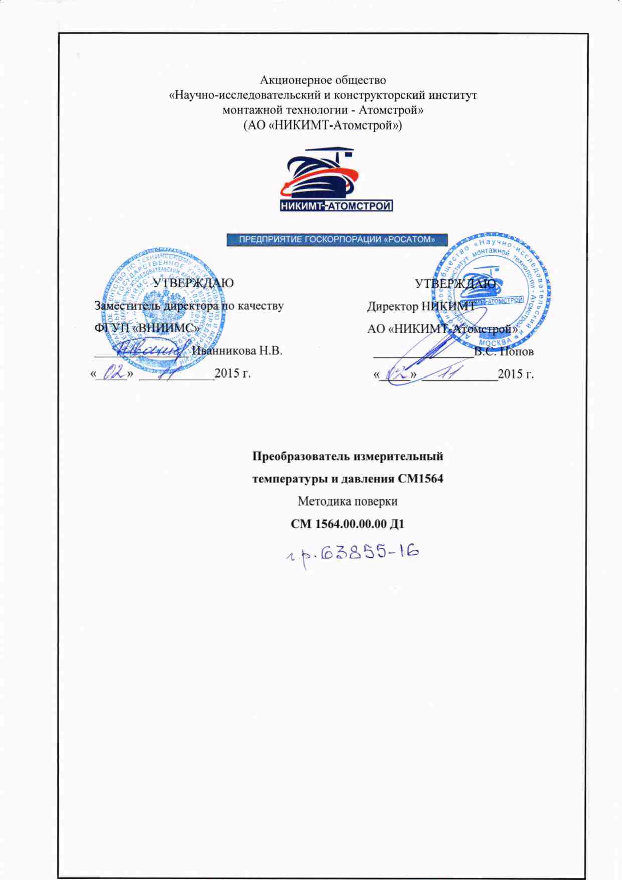 Методика поверки «Преобразователь измерительный температуры и давления СМ 1564» (CM 1564.00.00.00 Д1)
