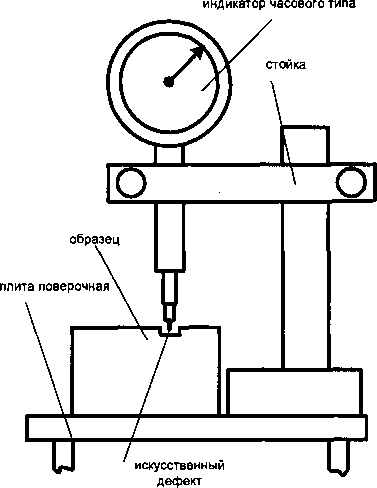 Схема измерений глубины искусственного дефекта с помощью индикатора часового типа