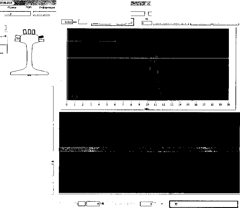 8.8.9 Установка считается прошедшей операцию поверки с положительным результатом, если длина переднего и заднего неконтролируемого конца рельса не превышает 750 мм и абсолютная погрешность измерений координаты дефекта относительно переднего торца рельса не превышает ± 100 мм.