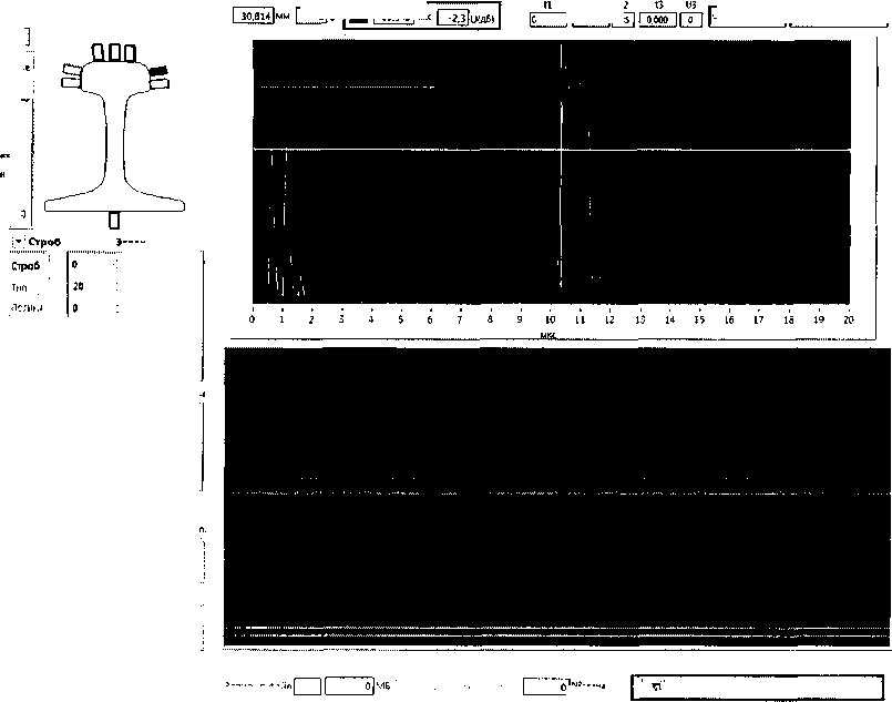 8.9.3 Убедится в факте фиксации установкой плоскодонных отражателей площадью Sn = 3 мм2 в шейке и головке рельса.